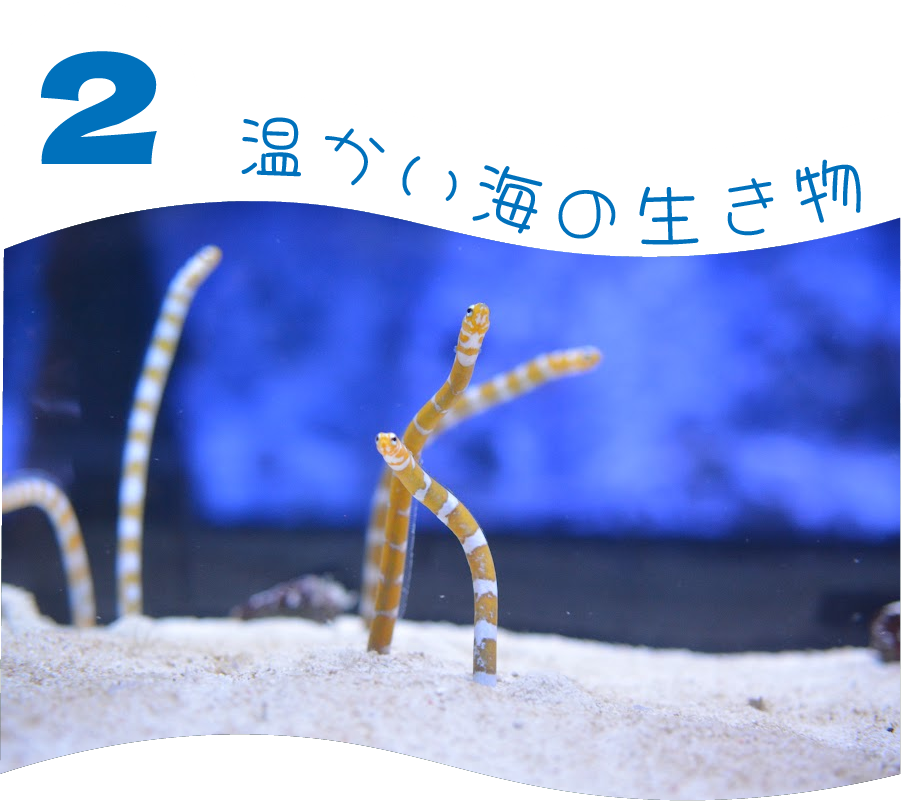 2階フロアでは温かい海に生息している生き物がいます。 写真に写っている『チンアナゴ』は代表が自ら連れてきました。